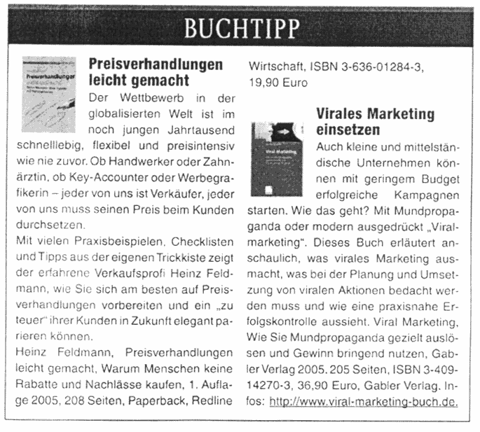 , ansteckend!" Buchtipp: sales Business, 10/2005, (eingescannter